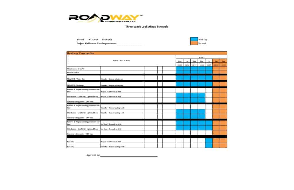 Notification of planned construction activity for 10-13-25 through 10-19-25: