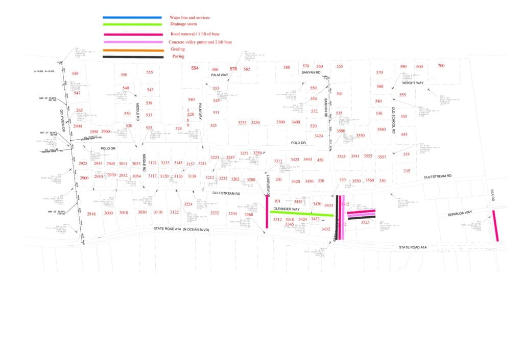 • Remove road and install the 1st lift of base rock on Lakeview Drive between Gulfstream Road and A1A.