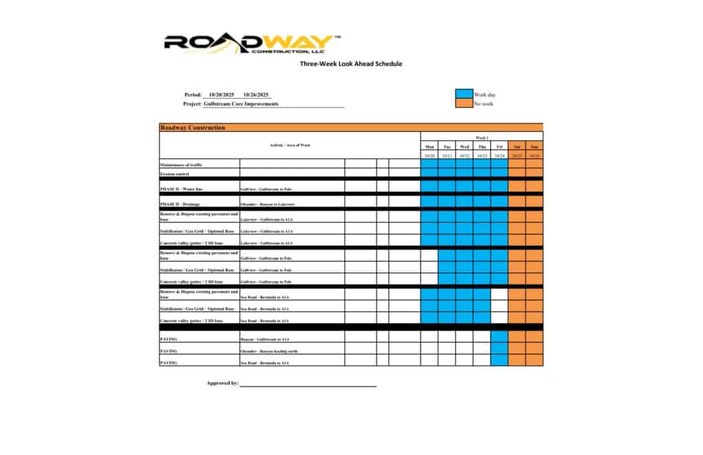 Notification of planned construction activity for 10-20-25 through 10-26-25:
