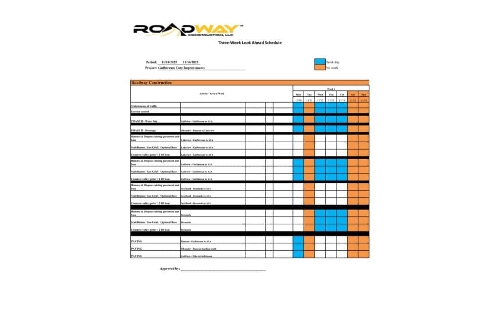 Notification of planned construction activity for 11-10-25 through 11-16-25: