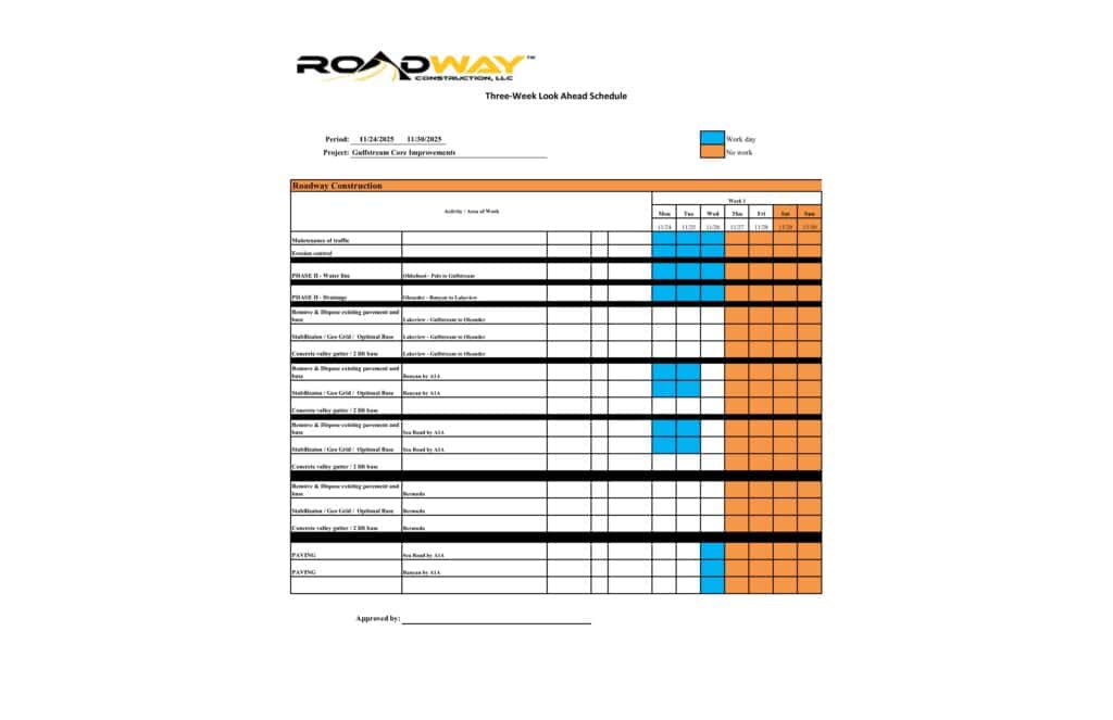 Notification of planned construction activity for 11-24-25 through 11-30-25: