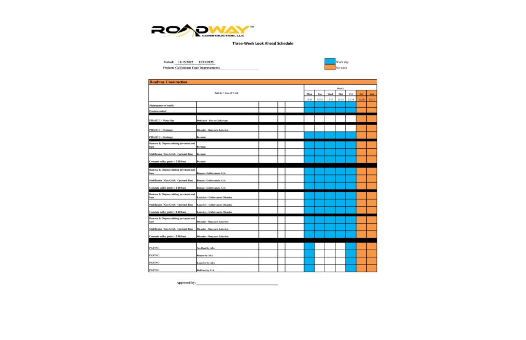 Notification of planned construction activity for 12-15-25 through 12-21-25: